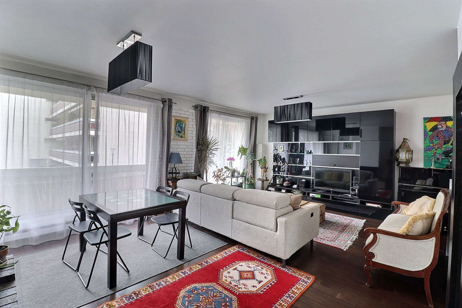 Il se compose de : une entrée avec espace dressing, un beau séjour lumineux avec cheminée, ouvrant sur un balcon exposé sud-ouest, une cuisine équipée, un dégagement avec placards, deux chambres confortables, une salle de douche, WC séparés