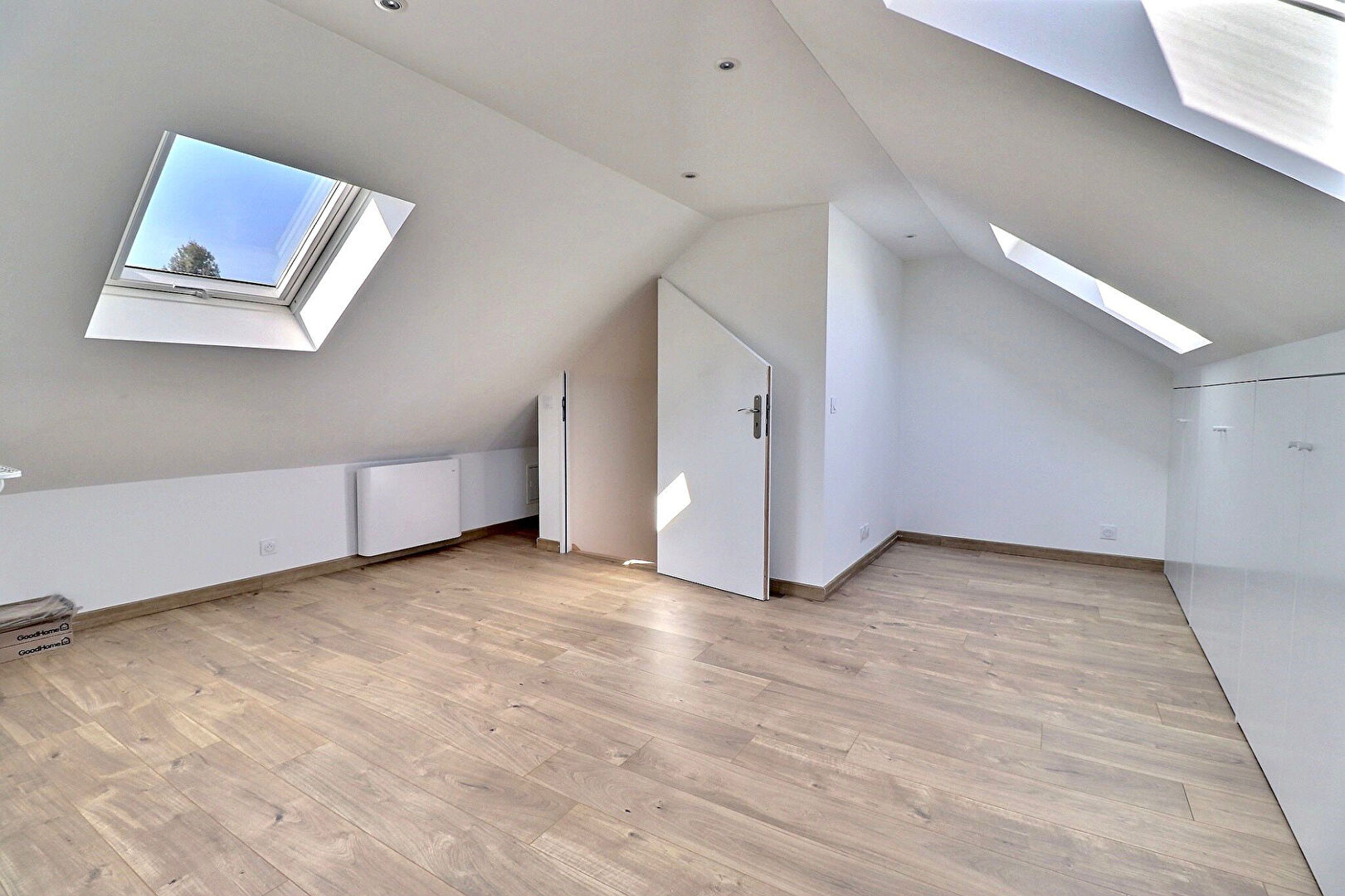 2ème étage : grande pièce de 20m² environ aménagée avec 3 velux, rangements (peut faire office de bureau ou de 4ème chambre). Chauffage électrique au 2ème étage.