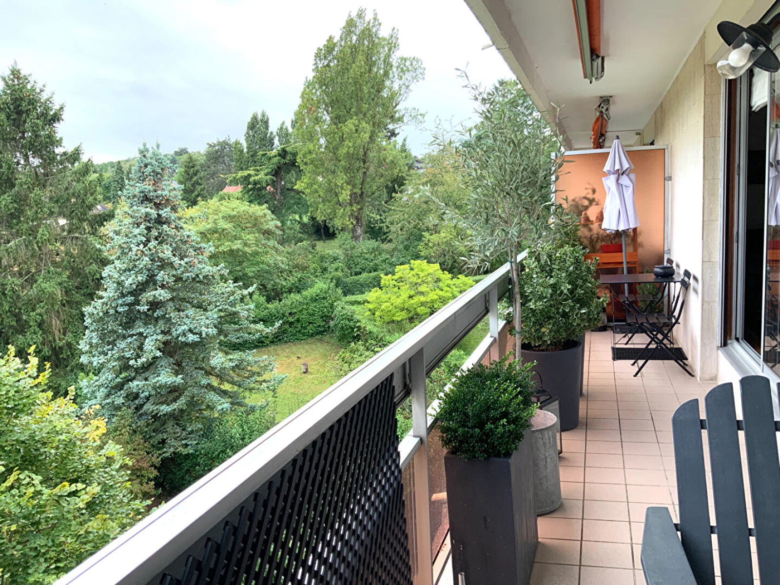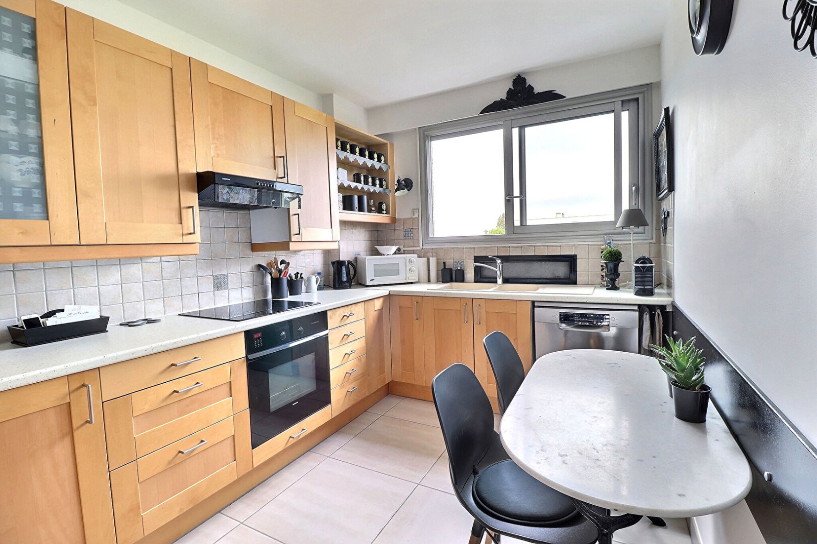 À Mareil-Marly, à 2 pas du Tram 13, direction RER A - RER C, dans une résidence de standing avec parc, ascenseurs, gardien et piscine, très bel appartement de 93 m², entièrement rénové, exposé SUD / SUD OUEST avec vue dégagée.