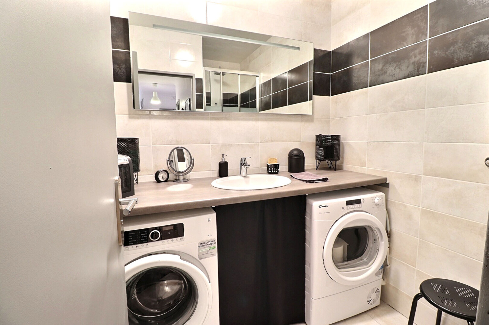 L'appartement dispose d'une belle entrée avec de grands placards, d'un séjour double de 32 m² avec de grandes baies vitrées donnant sur le balcon, de 2 chambres, d'une cuisine indépendante entièrement équipée, d'un grand dressing, d'une salle de bain, d'une salle de douche, et d'un WC.