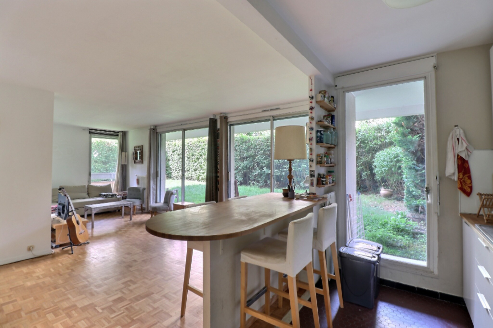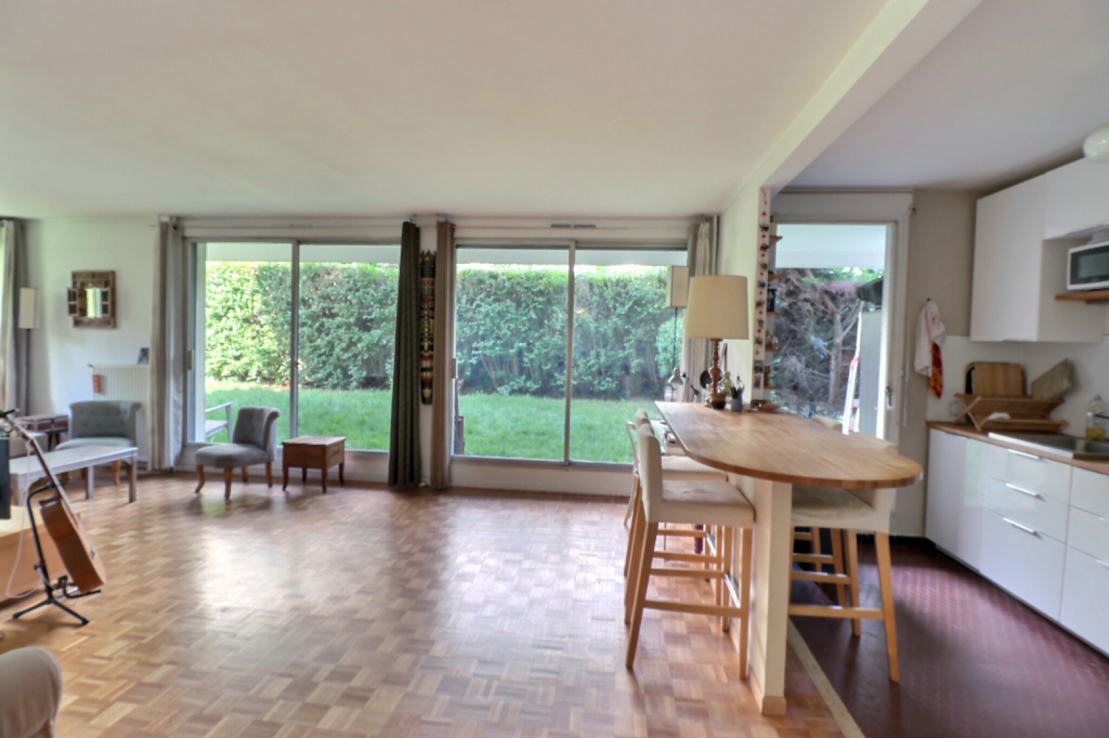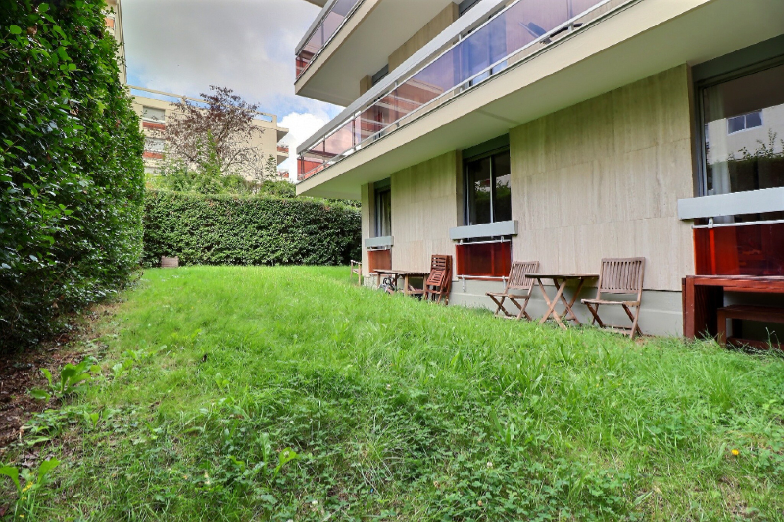 Dans résidence de standing avec piscine, parc et gardiens, bel appartement de 74.64m² ouvert sur jardin privé.
