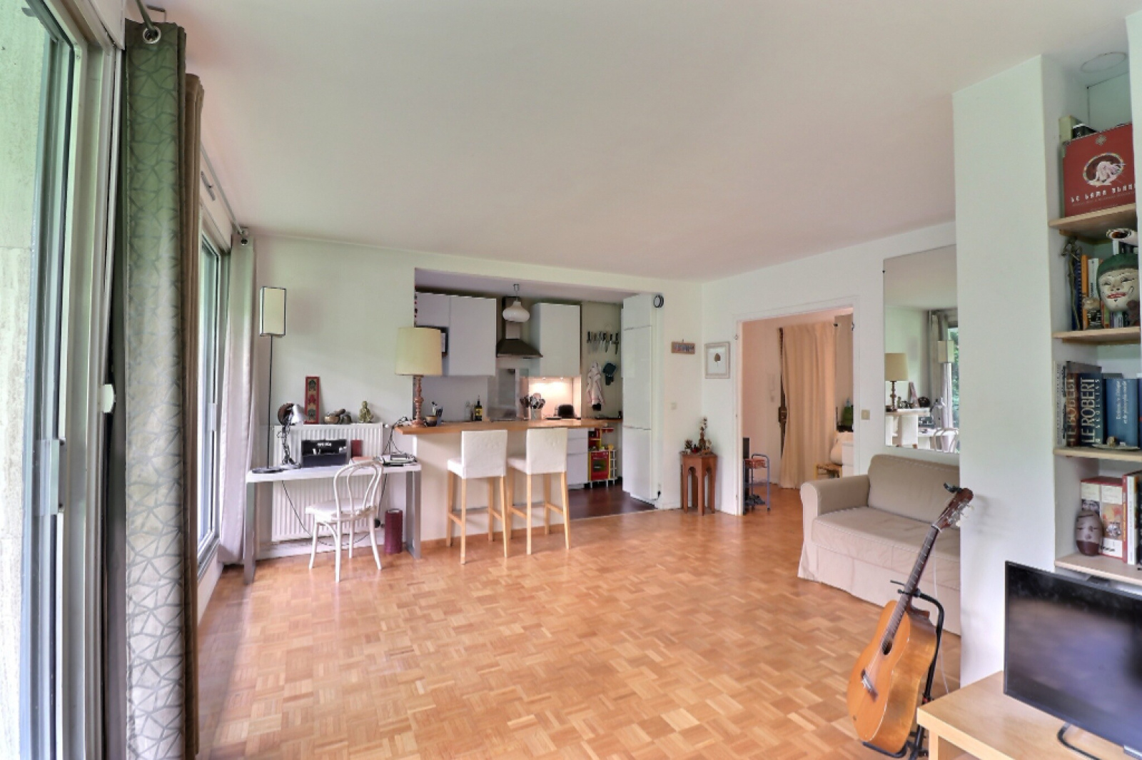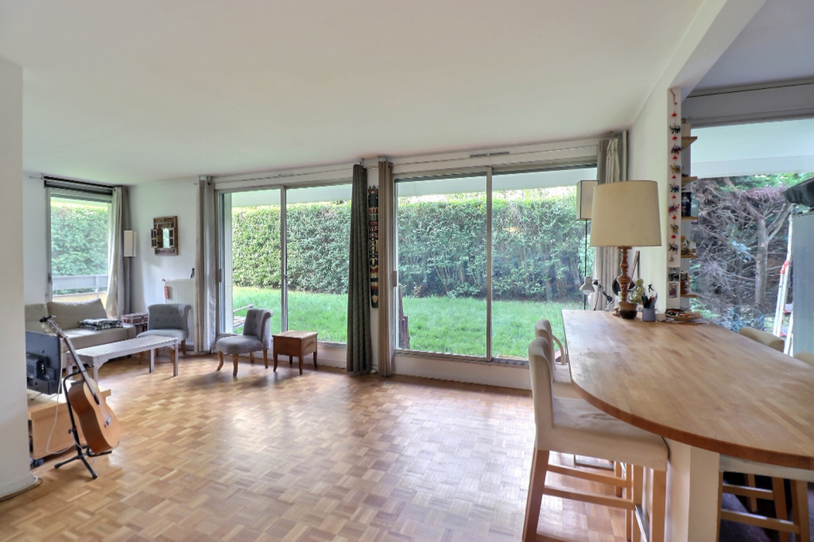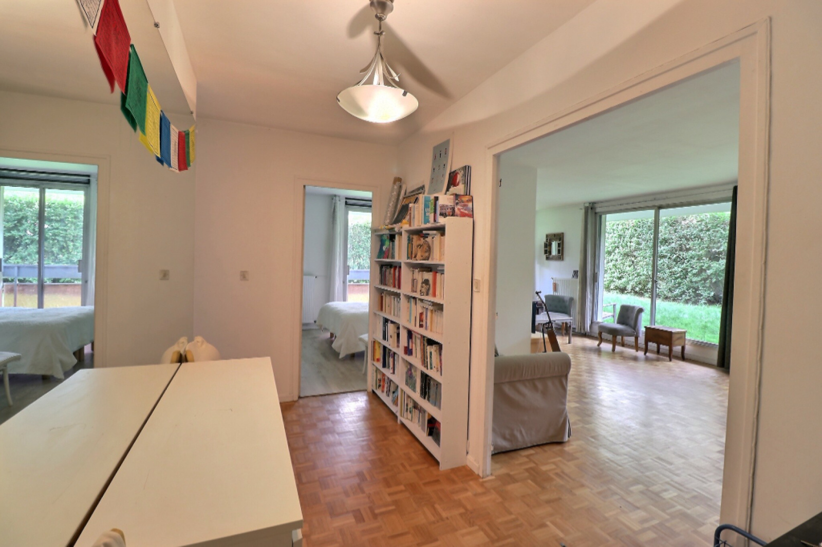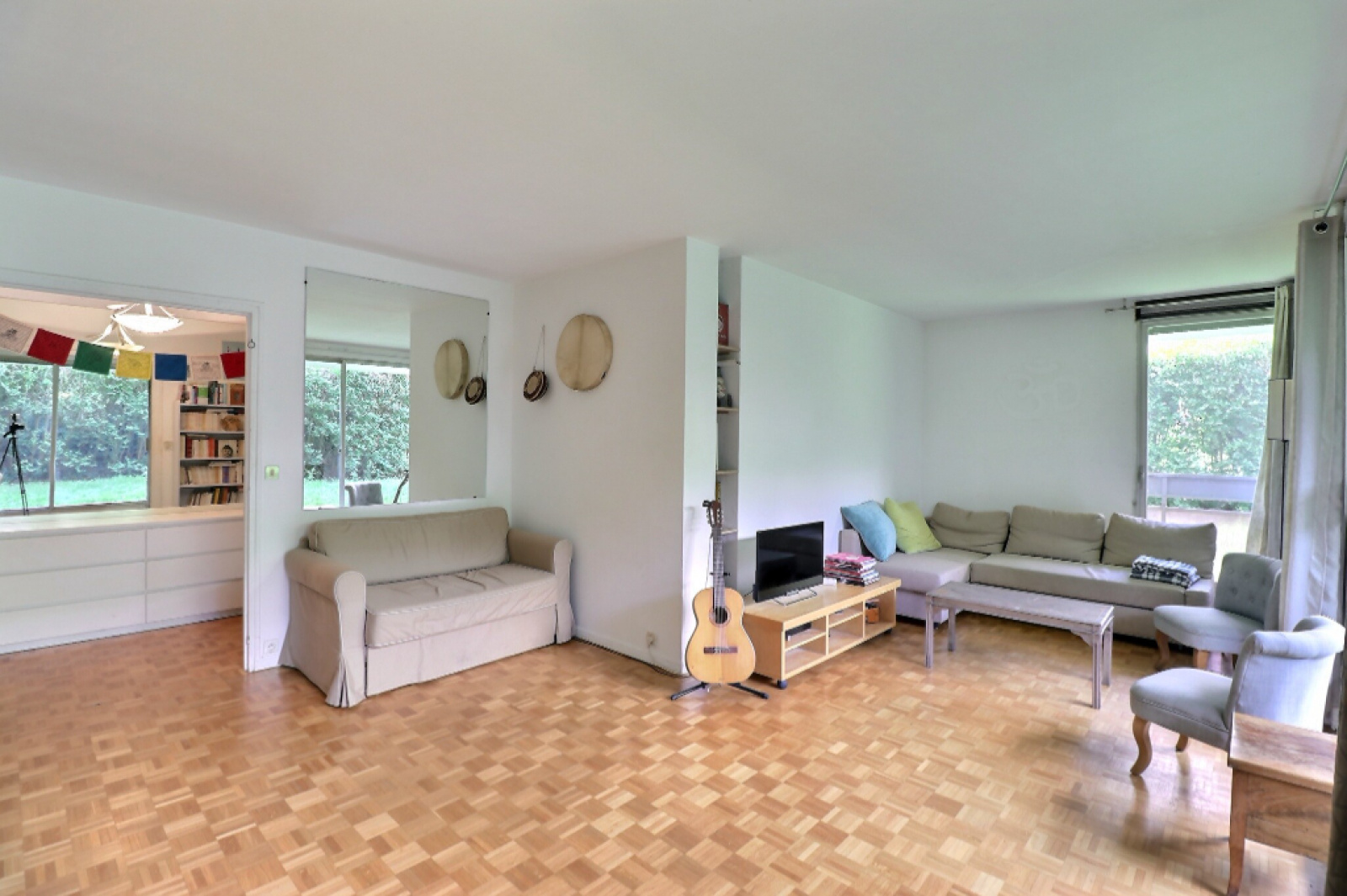 Dans résidence de standing avec piscine, parc et gardiens, bel appartement de 74.64m² ouvert sur jardin privé.