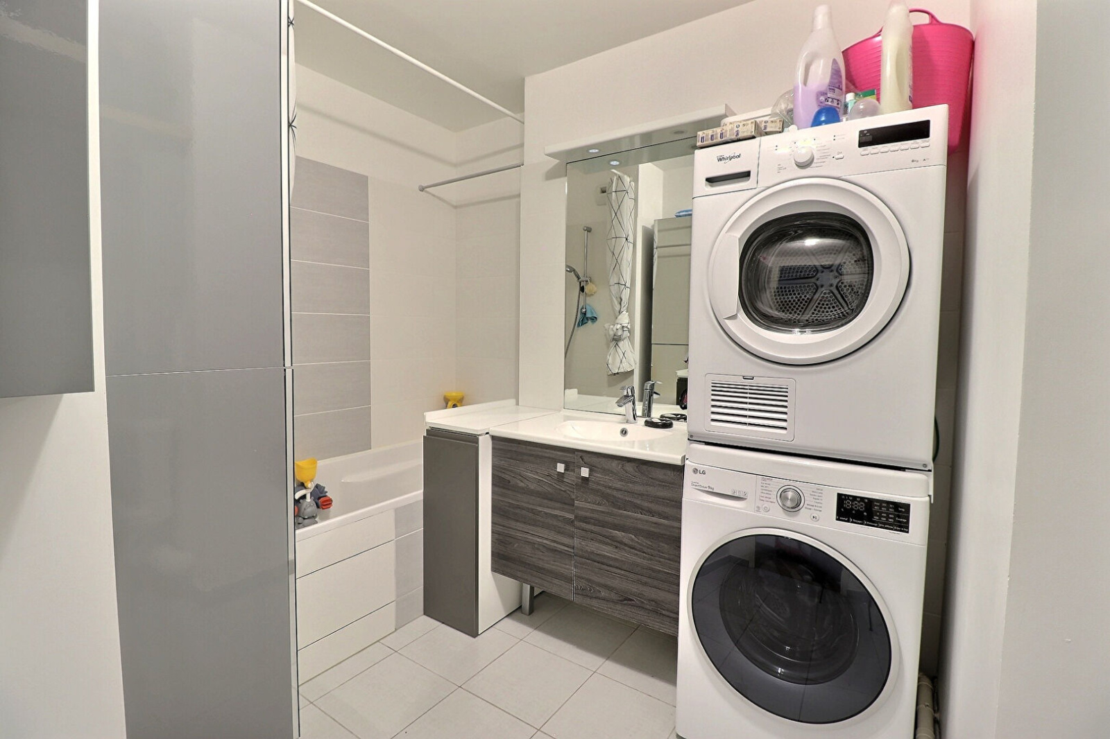Entrée, séjour de 27m², cuisine Schmidt US équipée sur balcon, chambre avec salle de douche, 2 autres chambres, salle de bain avec wc, wc indépendant.