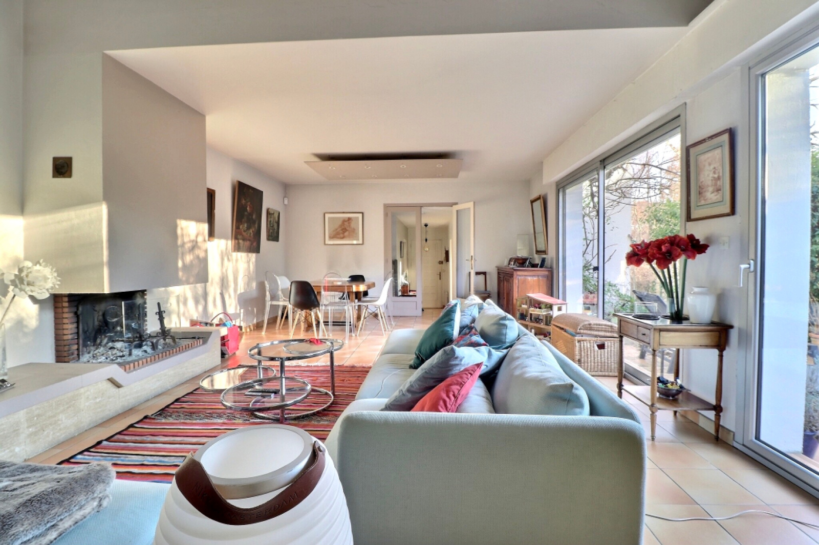 Non loin de la gare ligne L direction St Lazare, dans un environnement préservé en bordure de zone naturelle, maison des années 80' rénovée d'une superficie d'environ 110m² (+ sous-sol total d'environ 75m²) sur un terrain de 687m². Rez-de-chaussée : entrée, Vestibule avec vestiaire et wc séparé, Cuisine équipée, Séjour double avec cheminée expo SUD-OUEST.