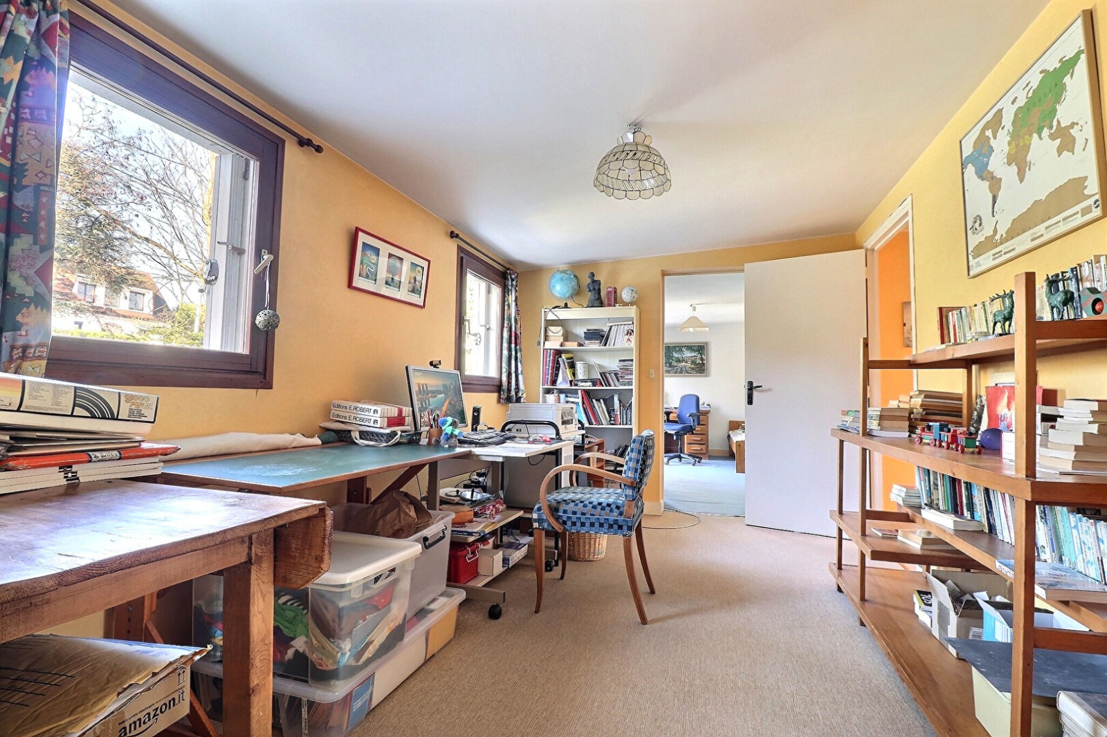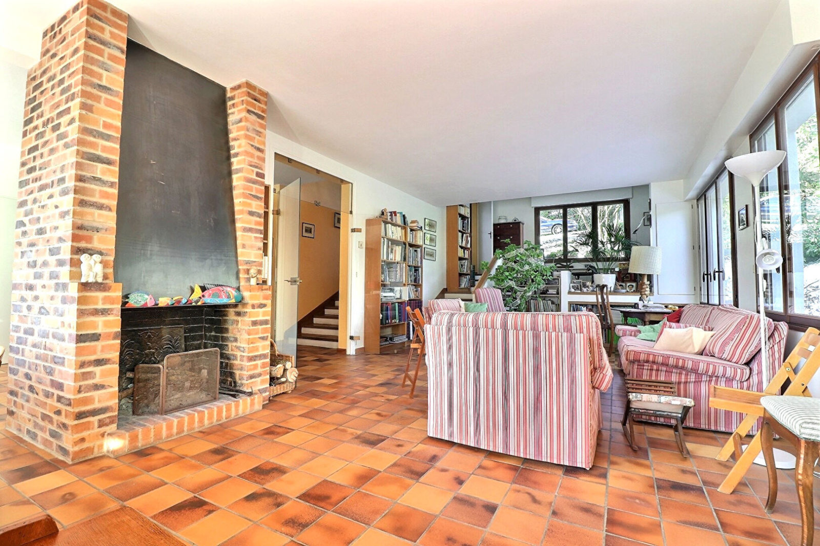 Magnifique maison de 1974, idéale pour les grandes familles grâce à ses 7 chambres et son espace travail, sur terrain de 965m². Les volumes sont mis en valeur par de nombreux éléments architecturaux typiques de la fin des années 60' pour un coup de coeur visuel assuré. Le séjour de près de 60 m², avec cheminée, est baigné de lumière grâce à ces nombreuses baies vitrées, et permet d'aménager, par sa forme, plusieurs coins détentes dans le même espace. La grande terrasse au sud, dont l'accès se fait directement depuis la cuisine et le salon, donne directement sur le jardin. Un atelier de près de 20 m², faisant partie intégrante de la maison, et se situant au RC, pourrait facilement être aménagé en pièce de vie supplémentaire. Enfin un garage 2 voitures et une cave complètent ce bien. Collège Roby et Lycée Jeanne d'Albret en bus (arrêt à moins de 2 mn). Accès rapide A13 , A14. Travaux à prévoir. 899.000€ HAI, soit 868.600€ NV + 30.400€ de frais d'agence charge acquéreurs.