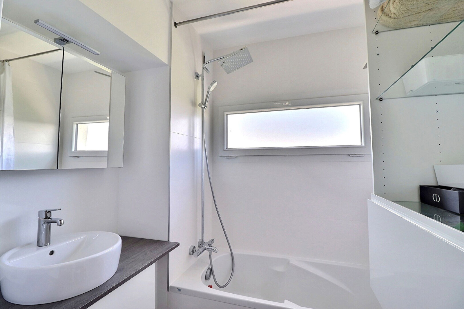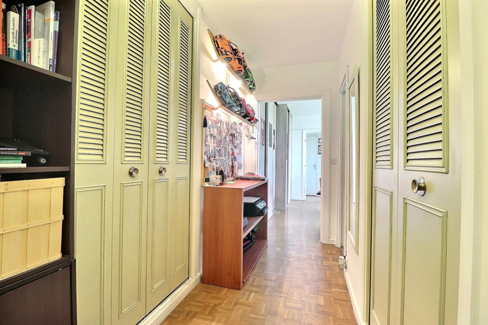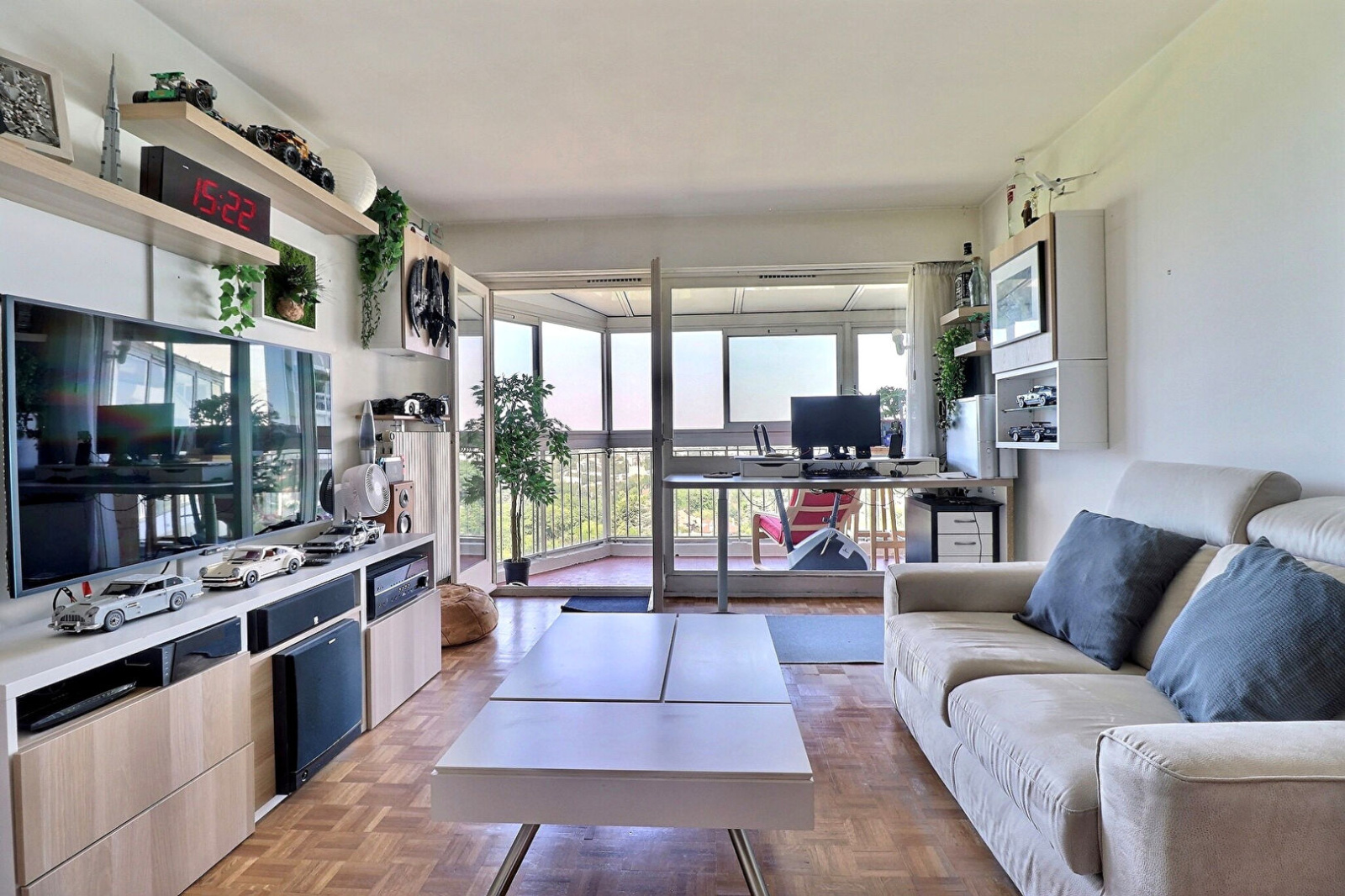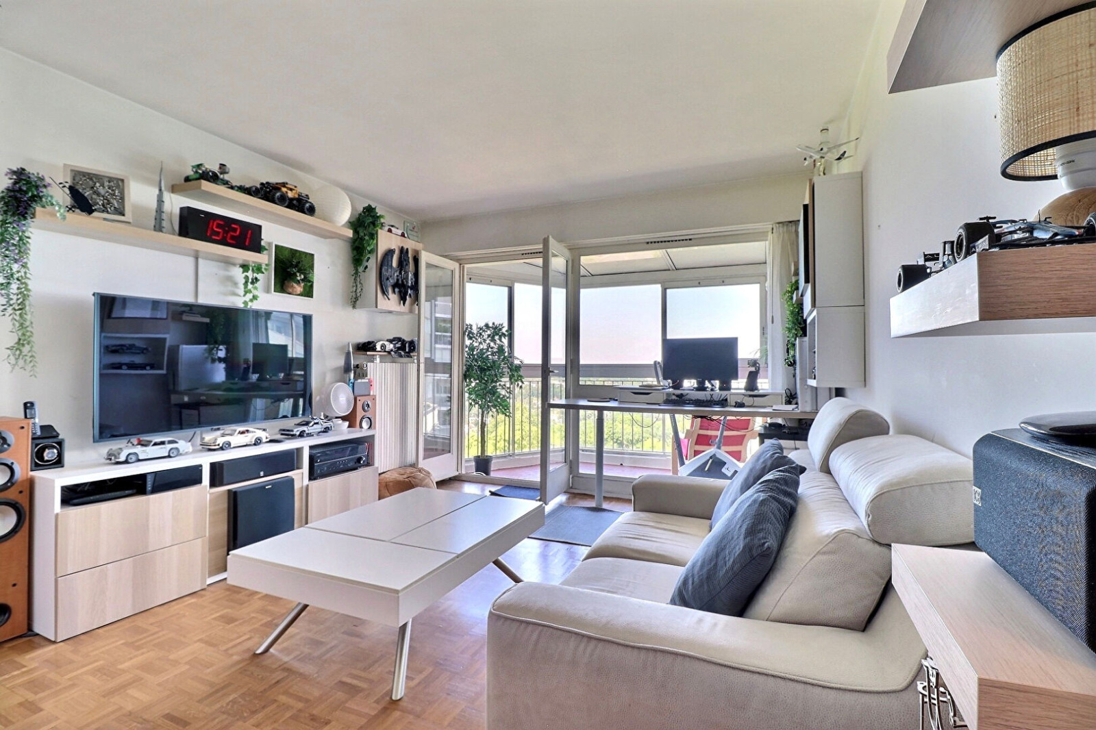 Entrée parquetée avec placards, wc et lave-mains, séjour 18.65m² avec de nombreux rangements, cuisine équipée avec four, plaque de cuisson, hotte et micro-ondes, loggia de 10.30m², dégagement avec placards, chambre, salle de bain, wc. Cave. Place de parking extérieur privée.