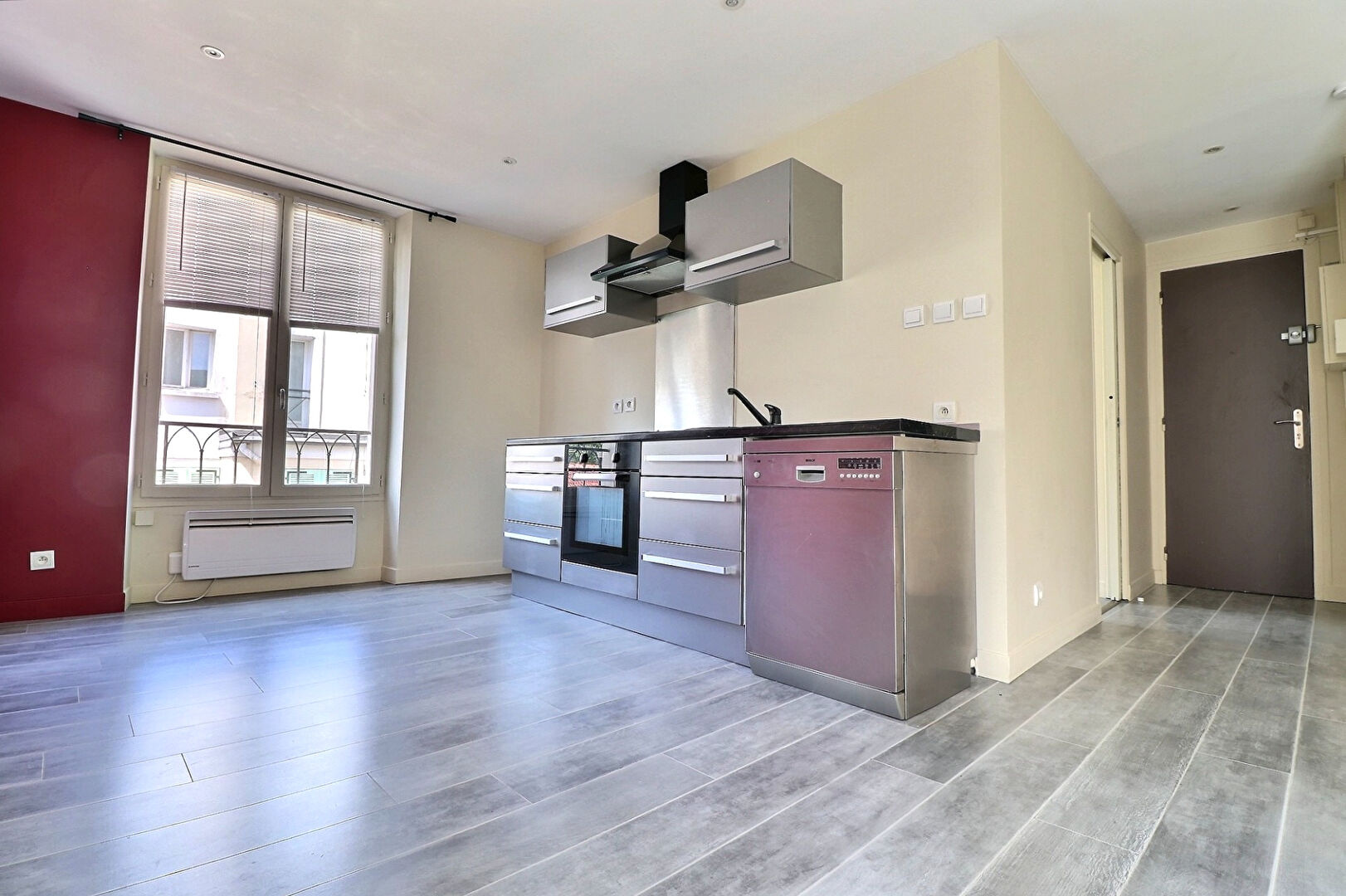 Entrée, séjour de 24.50m² avec cuisine américaine équipée (hotte, plaque de cuisson, four, lave-vaisselle), chambre, salle de douche avec wc. Cagibi privatif sur le palier avec ballon d'eau chaude et buanderie.