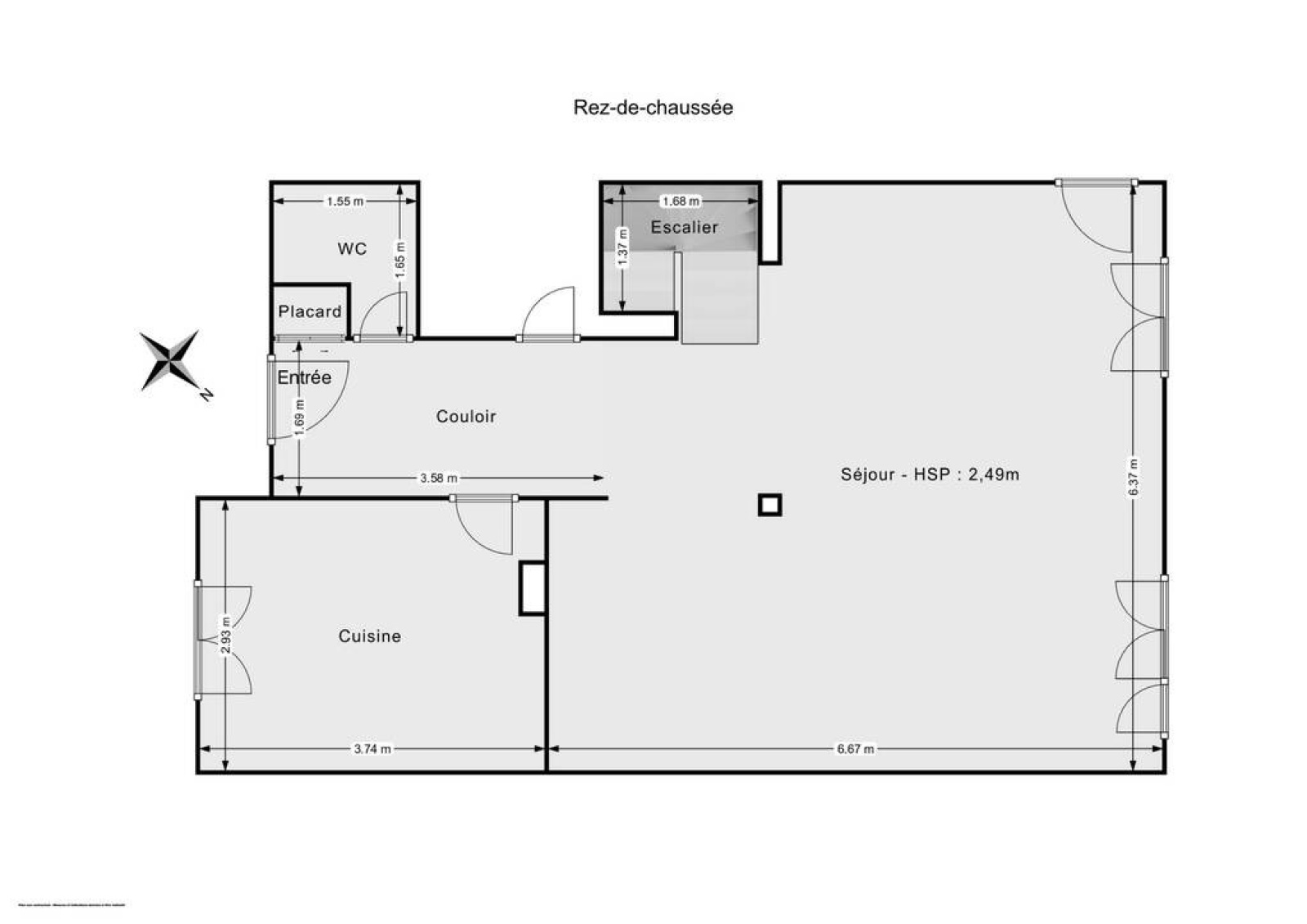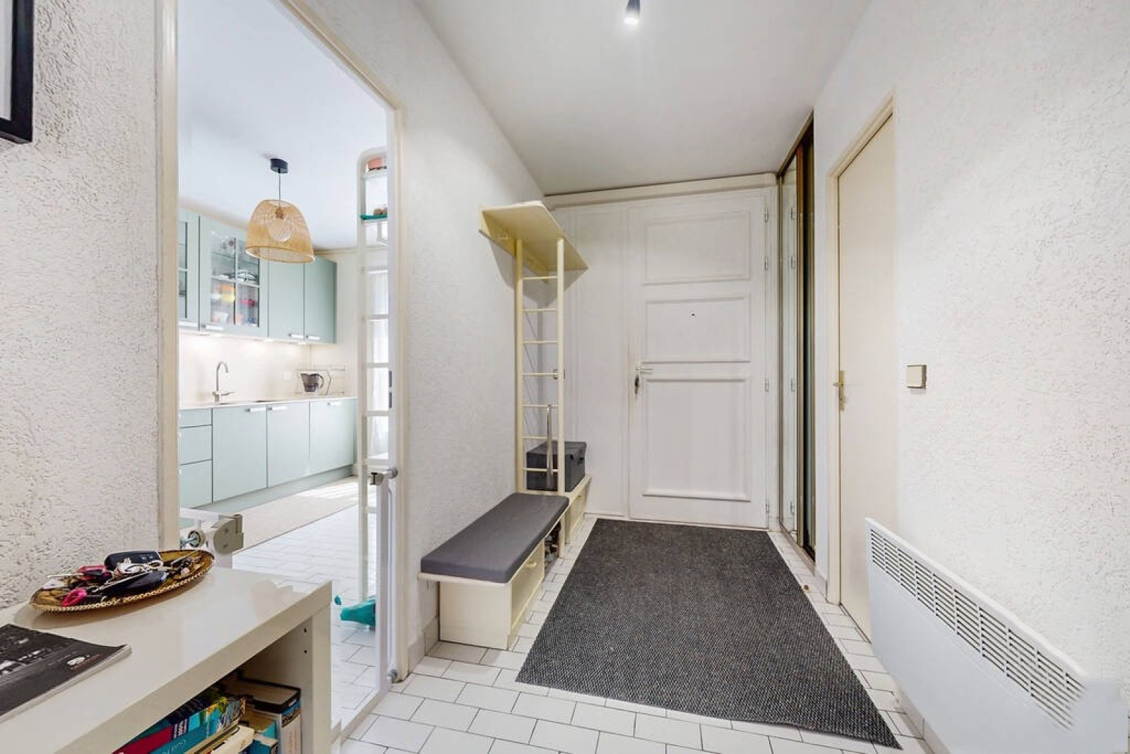 Entrée avec rangement, séjour/salle à manger, cuisine indépendante équipée, wc et lave-mains.