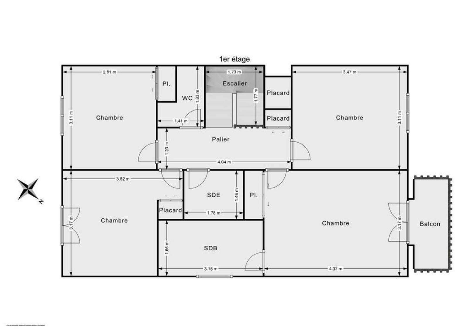 Etage : palier, suite parentale avec salle de bain, 3 chambres avec placards, salle de douche, wc.