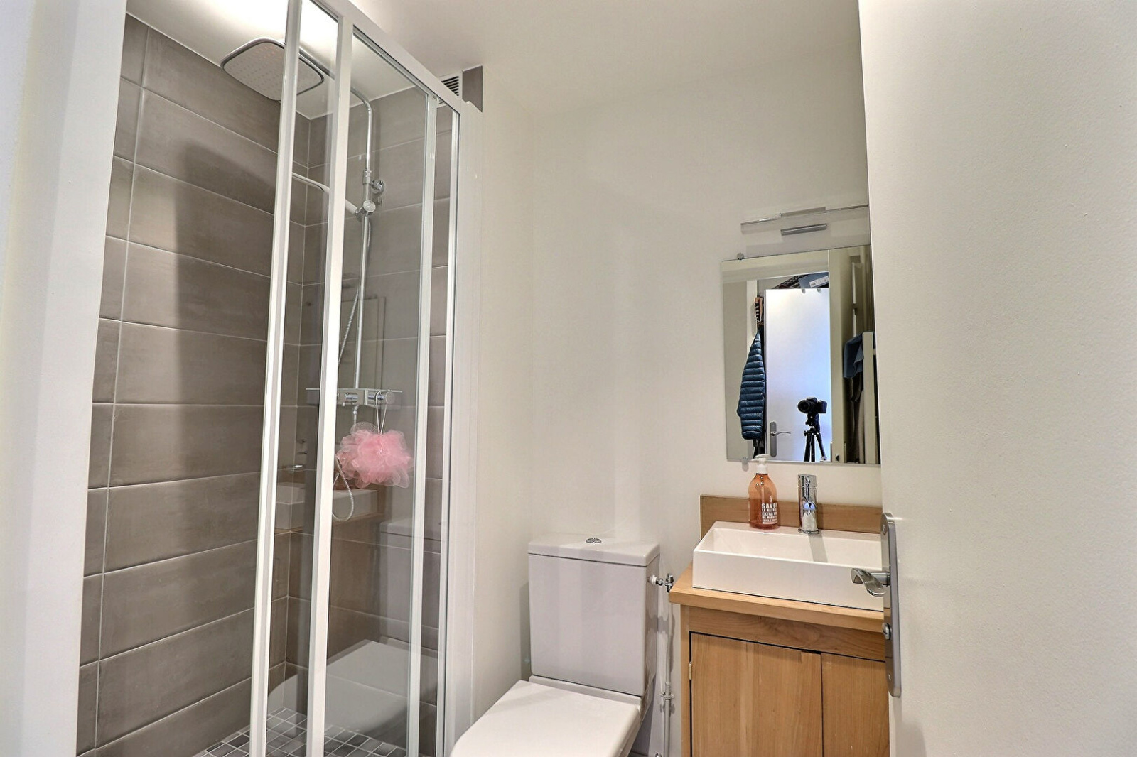 À l'étage : deux chambres avec placards, toutes deux ouvertes sur balcon, une salle de douche, une salle de bain, un dégagement avec rangements.