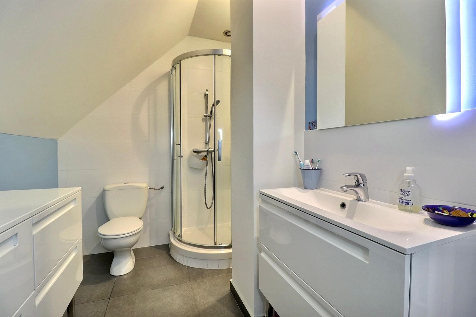 Au 1er étage : palier, 3 chambres avec placards, salle de douche avec wc.